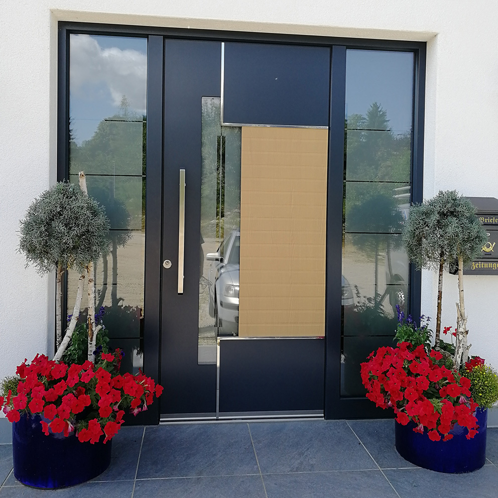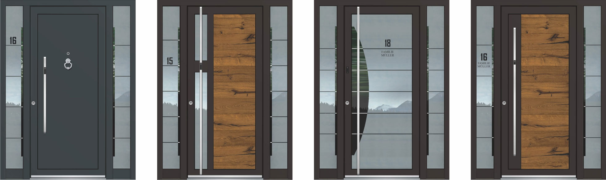 Ausstattung Glasfüllungen: 3-Scheiben- Wärmeschutzglas in den Seitenlichtern (0,5 W/m²K) und den Modellen mit kompletter Füllung aus Glas (0,5 W/m²K).